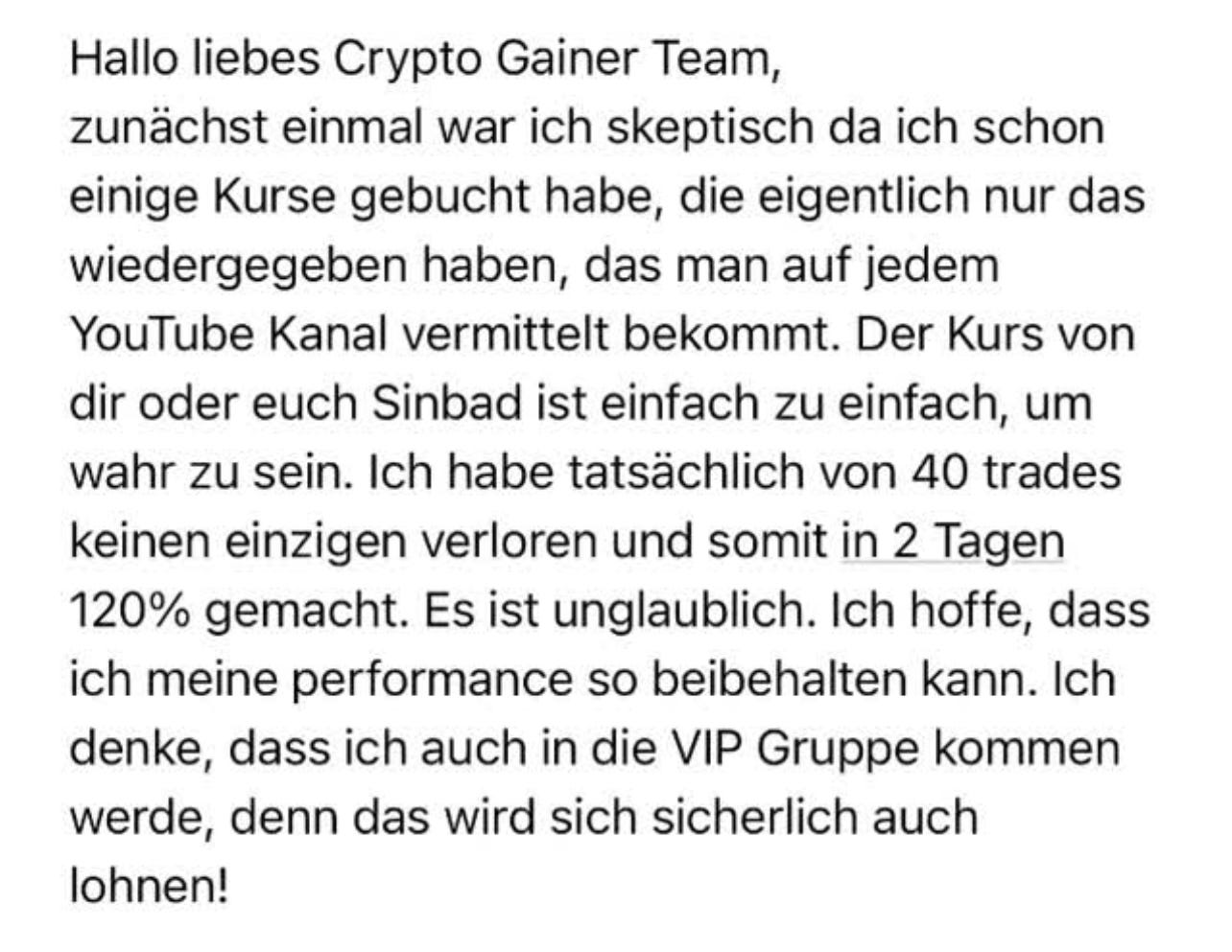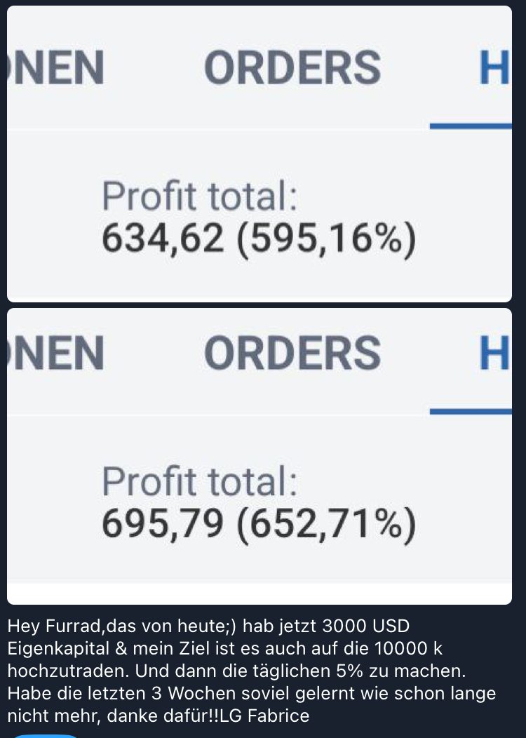 PS: Ich dachte selbst noch vor etwas mehr als einem Jahr, dass das Traden nicht so einfach ist. Und heute verdiene ich über 20k pro Monat.
